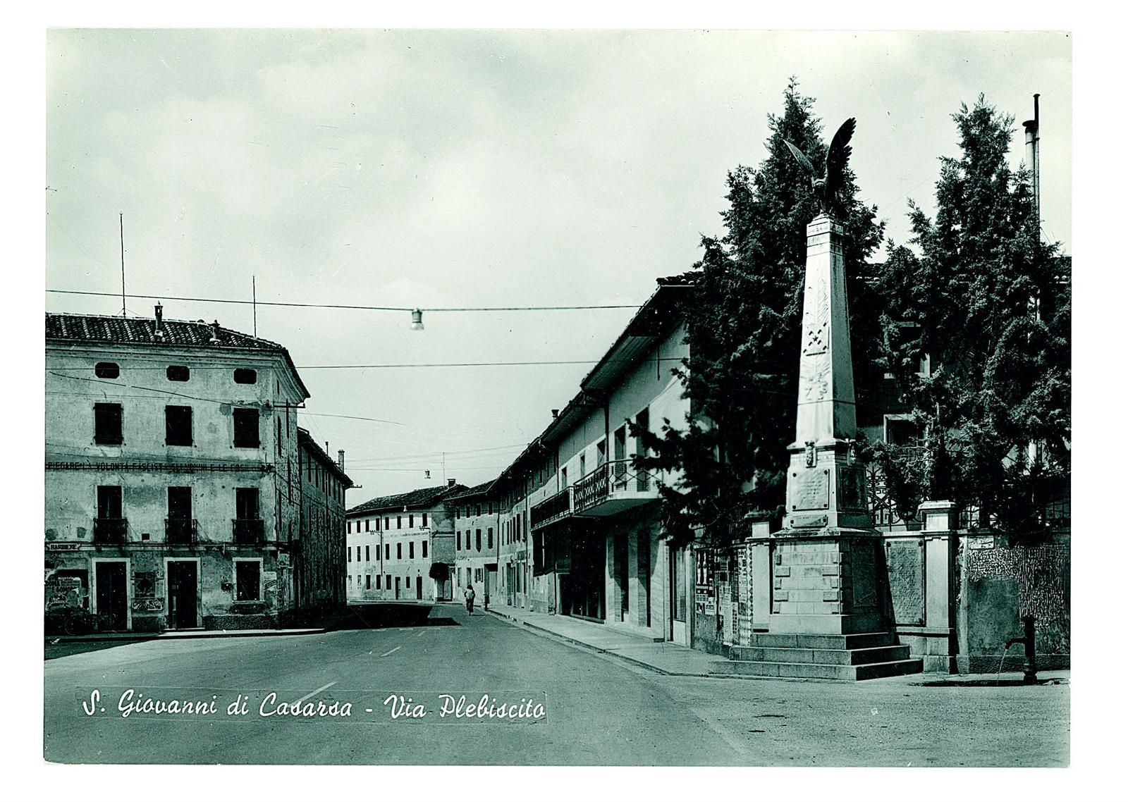 il Monumento ai Caduti; a sinistra il palazzo