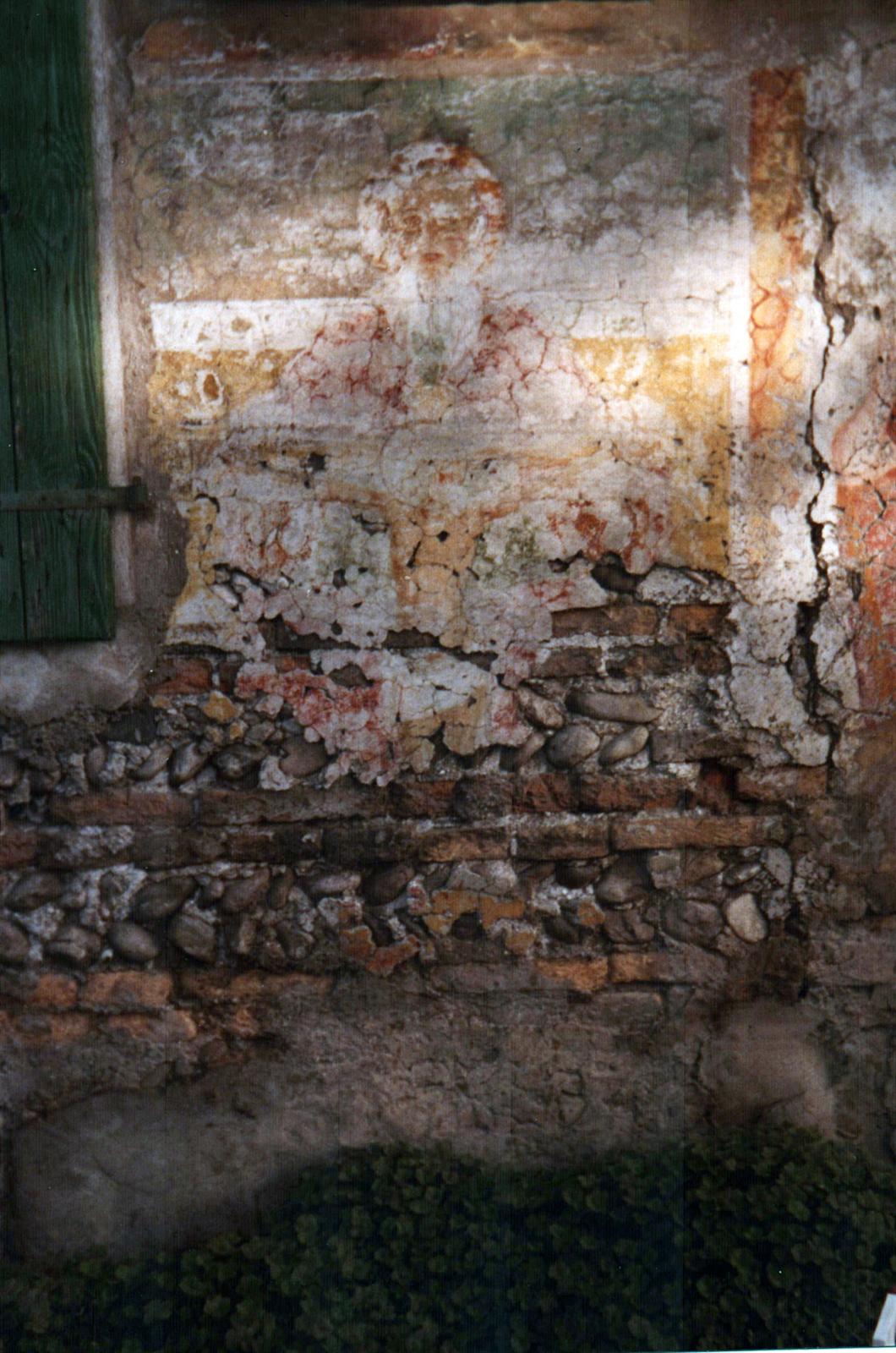 Località di San Floreano in San Giovanni, 17.12.1979: resti di affreschi che si trovano sulla parete esterna della casa Francescutti.